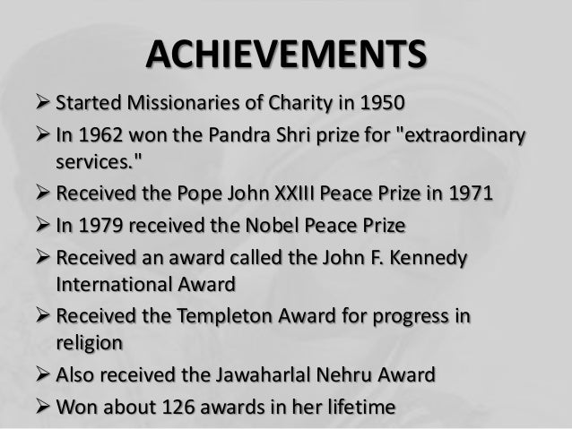 Mother Teresa Achievements / Mother teresa received many awards during her incredible lifetime, including the nobel peace prize.
