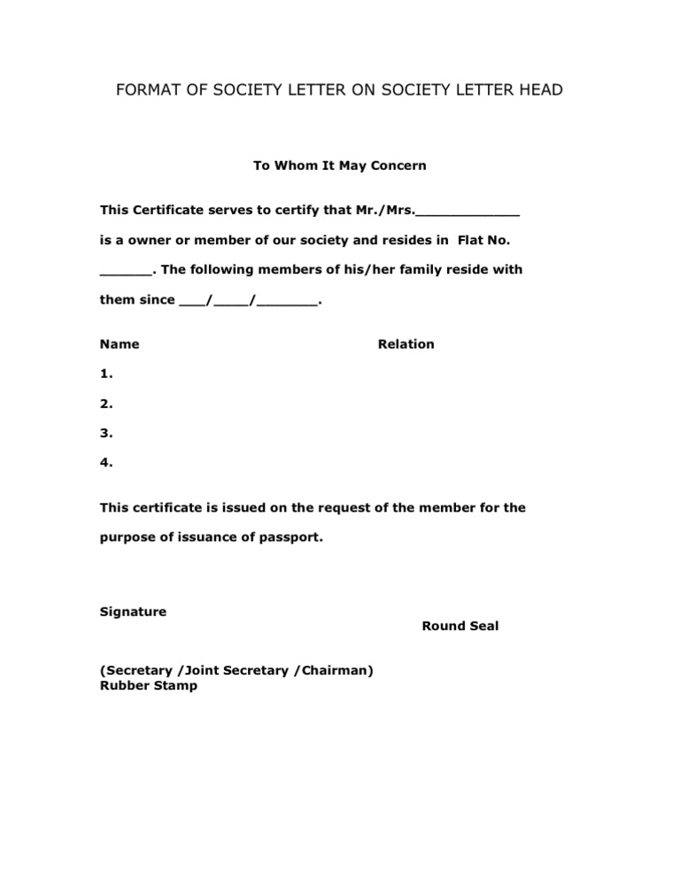Society Letter For Passport / Is it a residence certificate?